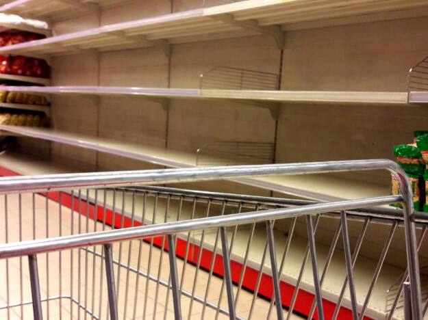 Lineales vacíos y aceite de girasol con alarma, huellas en el súper de la huelga del transporte y la guerra